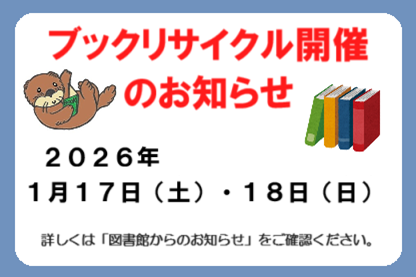 - 1月17日(土)・18日(日)ブックリサイクル開催のお知らせ
