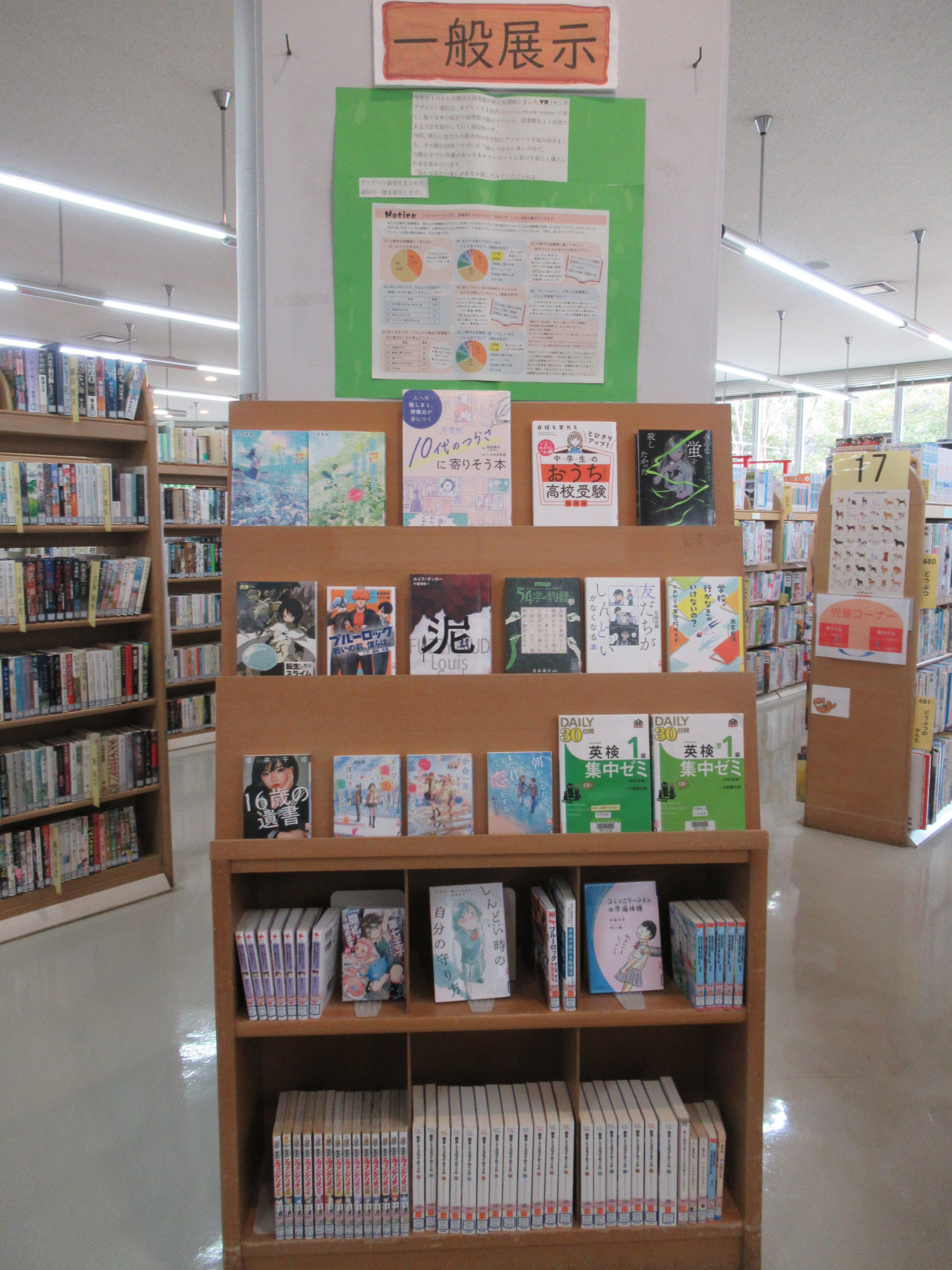 発行に先立ち、小郡市内の一部の中学校にアンケートを協力頂きました。その際に回答いただいた「読んでみたい本」の中で、当館にすでに所蔵があった本やアンケートに基づき新しく購入した本を集めて展示しています。